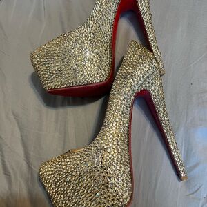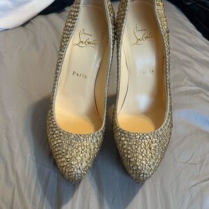 Christian Louboutin Gold Crystal Platform Heels