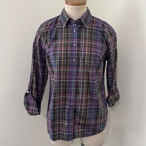 NEW Talbots 8 Petite Plaid Button Down Shirt Top ~ Roll Tab Preppy Classic