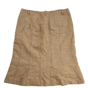 Ann Taylor Loft size 6 Brown Tweed Midi Skirt Flare A-Line Classic Business Wool