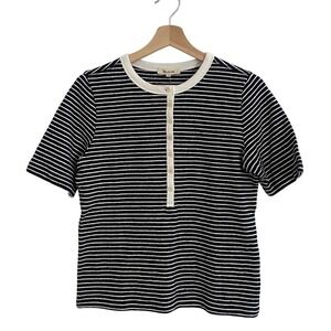 Madewell Striped Elbow Sleeve Henley Tee Shirt Top Womens Medium Navy Cotton