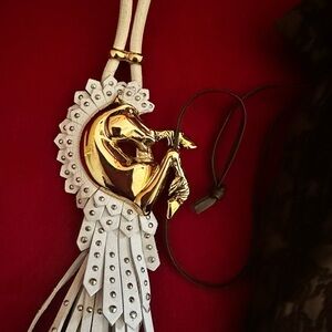 Roberto Cavalli Vintage Gold and White Leather Necklace