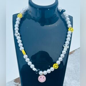 NWT Y2K Pearl & Shroom Necklace w/Smiley Face Charm