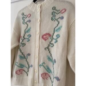 Vintage Erika knit cottage core button cardigan sweater with floral detail sz M