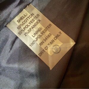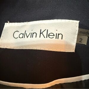 Sophisticated classic black blazer by Calvin Klein. Features elegant button details. Ideal for both office and evening wear.