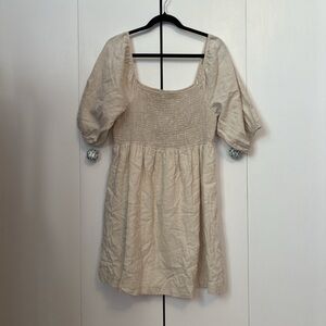 Off white linen summer dress. Perfect for summer vacations on the beach, walking around quaint towns, or chilling in your cottage. You can wear the sleeves on the shoulder or off the shoulder.