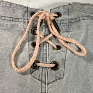 Anthropologie Pilcro Lace Up Romantic Festival Boho Denim Shorts Size 32 Stretch