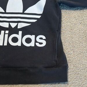 Adidas Mens Hoodie White Trefoil Logo Pullover Sweatshirt Black Size S