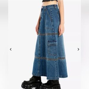 🔥Social Collision Zip-Off Denim Cargo Maxi Skirt Size XL