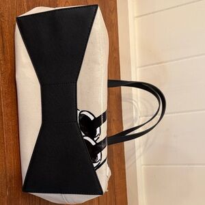 Front features Minnie Mouse screen art, Tote with zip top closure, Coated canvas with crosshatched fabric trim