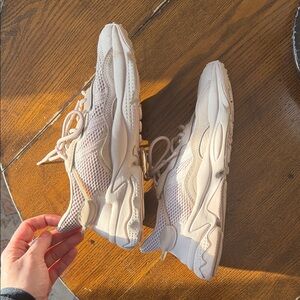 Elevate your look with these Adidas sneakers. Stylish beige mesh design. Perfect for casual outings.