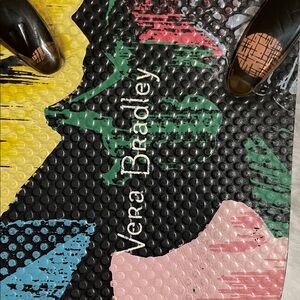 Vera Bradley sandals / flip flops with vibrant floral design. Black base with red, yellow, and green accents. Perfect for casual wear. Please see pictures for details & measurements, no size listed runs similar to size 9.