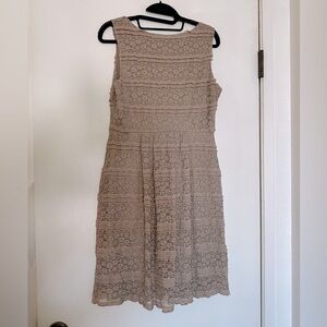 Cynthia Rowley, Lace Dress, Fit and Flare, Sleeveless Dress, Feminine Style, Taupe Dress, Blush Beige, Romantic Dress, Wedding Guest Outfit, Bridal Shower Dress, Garden Party, Classic Style, Preppy Dress, Neutral Dress, Day to Night, ruffle lace dress