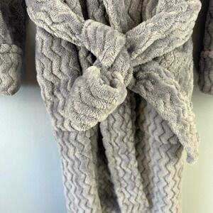 Natori Blue Plush Textured Robe Size M Loungewear Spa Day Cozy Fleece Fuzy