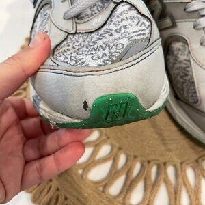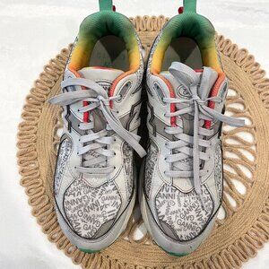These are gently used New Balance x GANNI 2002R "Rain Cloud" Sneakers Men's US 11. In very good condition. Writing on insoles of shoes has worn away. Minor marks on front of shoes and minor signs of wear on soles. See all pics for condition.