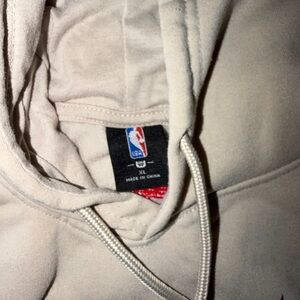 Comfortable NBA Bulls hoodie. Light gray with red logo. Ideal for fans.