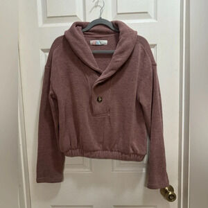 This is a listing for a preowned Free People Bino Pullover Mauve Size XS 2 Button Collar Textured Knit Oversized. Good preowned condition, I see no holes or stains, approximate measurements in photos. Please see all photos for details as they are part of the description.
