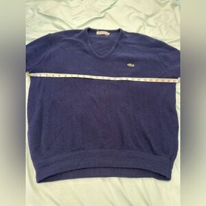 Vintage 70s/80s Izod Lacoste Men’s Sz: XL V-Neck Blue Pullover Sweater. Normal wear and pilling for a sweater of this age. In good condition. No rips, stains or defects. Please see pictures for measurements.