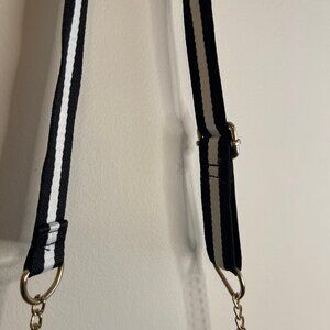 Strap: Gold-tone chain with adjustable faux leather shoulder support