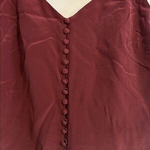 Beautiful, cropped camisole style silk blouse from Madewell. Burgundy color shows best in first pic. Covered buttons down front. Adjustable spaghetti straps. Fully lined.
