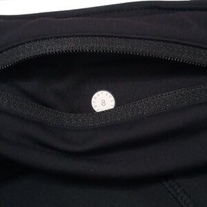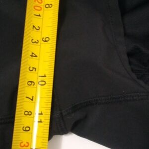 This article worn several times. color is black. lined. drawcord. tag size in back zip pocket. lightweight. swift fabric. lowrise.