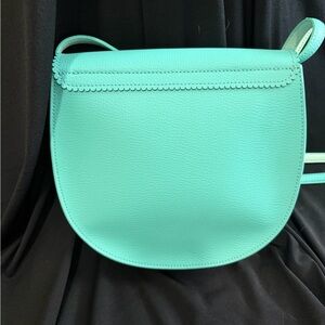 Elegant aqua crossbody bag featuring a stylish bow. Ideal for any occasion.
