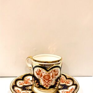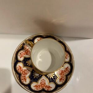 Antique Wileman &CO Bone China Cup in Japan Imari Pattern Stamped Between 1872-1911 Beautiful teacup and saucer with intricate floral design. Features gold accents and a striking blue detail