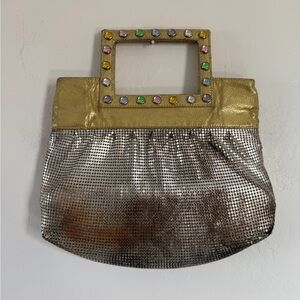 Whiting and Davis Metallic Gold and Silver Mesh Rhinestone Bag