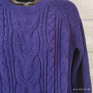 J. JILL CHENILLE PURPLE CABLE KNIT SWEATER