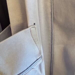 This knit jersey bathrobe is soft, comfortable, and non-clammy thanks to its all-cotton fabric and collarless finish. Long sleeves, interior tie, hanging loop and two front patch pockets. At 5'4", length for me is at mid-calf. Last photo shows small hole at one pocket.