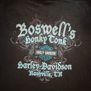 Black short sleeve tee with intricate Nashville design. Features Harley-Davidson logo.