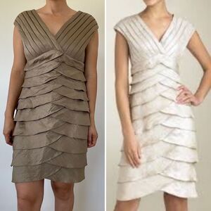 Adrianna Papell Bronze Layered Teared Cocktail Party Dress Petite Size 8P Sheath