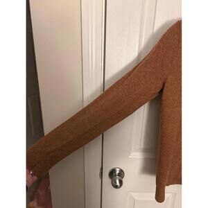 J. Crew Wool-Blended Crew Long Sleeve Sweater in size Small is a classic and versatile piece for women. The tight-knit fabric in a solid tan color makes it perfect for various occasions such as travel, casual outings, or business meetings. The sweater features a crew neckline, long sleeves with raglan sleeves, and pleated accents for added style. Made from a wool blend, this pullover sweater is suitable for all seasons, making it a timeless addition to any wardrobe. Made in the United States by J.Crew, known for their quality and preppy style.