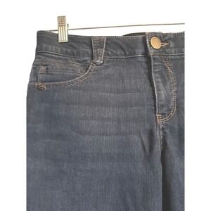 Democracy women's dark wash denim capri jeans size 12. These jeans feature the "Ab" solution technology for a flattering fit. Designed with a classic five-pocket style and a comfortable rise, they offer a versatile look for various occasions. Perfect for a casual day out or a relaxed evening.