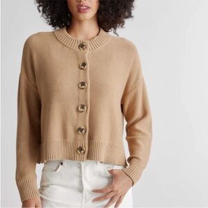 Quince 100% Organic Cotton Cardigan in Camel tan size large