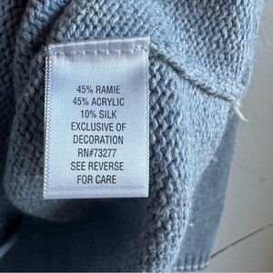Made from a textured knit blend with ramie and silk, giving it a slightly elevated, vintage-inspired look and feel. Easy to layer over tees or turtlenecks for cold-weather styling.