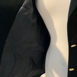 Elegant black blazer featuring gold buttons. Perfect for formal occasions.
