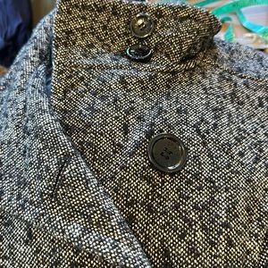 Esprit wool blend coat with a texture similar to dotted Swiss! Fully lined! Has inside button to hold in place! Size L! Pit to pit is approx 19.5 inches and length is approx 30 inches! Somehow I am missing a button! There is another button under fold back collar that could be used and relaxed with a different button as it only shows when collar is pulled all the way up! Otherwise this is very good condition!