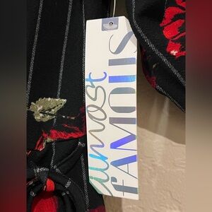ALMOST FAMOUS Floral Pinstripe Wrap Romper Black Red- Size S