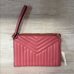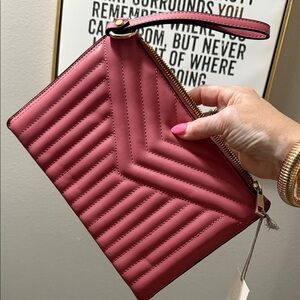 Chic and stylish pink quilted wristlet clutch. Perfect for any occasion. NWT