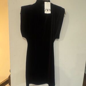NWT ZARA Black Velvet Mini Dress – Size M – Structured Sleeves