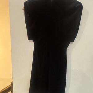 Elegant and chic Zara black velvet mini dress featuring a sleek mock neck and structured cap sleeves for a modern, sculpted silhouette. The plush velvet fabric gives this piece a luxe feel, perfect for evening events, holiday parties, or a night out. Minimalist yet statement-making.