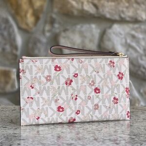 Michael Kors Jet Set Logo Floral Large Zip Clutch Wristlet
