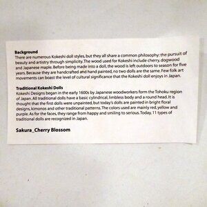 New in box, Japanese hand carved and painted wood, Kokeshi doll. Entitled: Sakura (Cherry Blossom). She is covered in carved and painted cherry blossoms. (See photos for details.) I am the original owner as it was purchased in Japan. It has been in climate controlled storage since acquired. Comes from a pet and smoke free home.