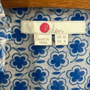 BODEN Blue Floral Button Down Sleeveless Blouse Size 6