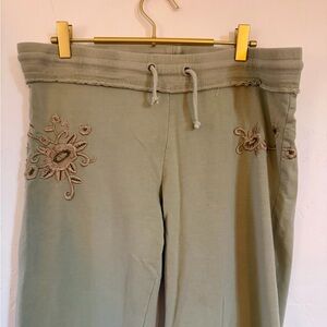 Vertigo Paris Y2K Green Embroidered Drawstring Cotton Sweat Pants Size Large