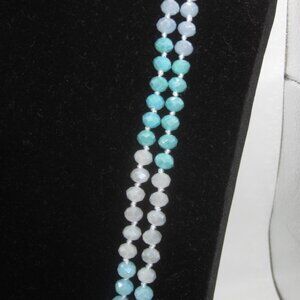 EUC, extra long at 60" total, 3 color hues Blue Blue Gray and Gray, individually knotted glass beads