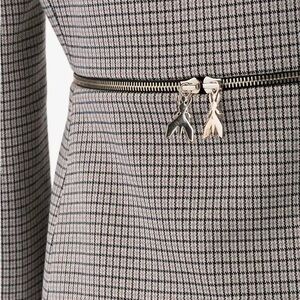 Sophisticated gray houndstooth blazer. Tailored fit with classic lapels. Ideal for professional and casual settings.