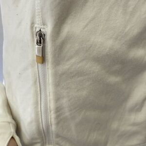 Lightweight athletic jacket inspired by Lululemon, made by Gap Body, size Small. Features sleek gold-tone front zipper, high collar, flattering fitted silhouette, and soft stretchy fabric ideal for yoga, running, gym workouts, or everyday athleisure wear. Designed for comfort, movement, and a minimalist modern look. Great for layering in cooler weather or wearing casually. Brand tag reads Gap Body, not Lululemon.
