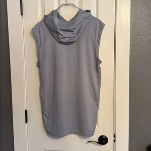 Men’s Umbro brand sleeveless hoodie work out top. Size medium. This silver gray colored top has an athletic cut and is in mint condition. Show off the guns at the gym with this classic sleeveless top.