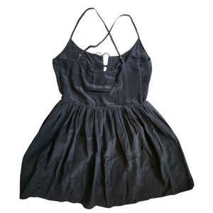 Elegant black midi dress with crisscross straps. Perfect for any occasion.